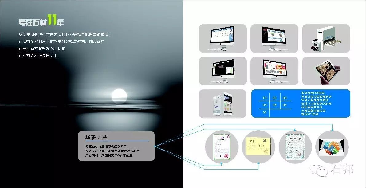 未来,销售模式一定是便捷性的、有规划性的。华研科技专注石材行业11年,用创新技术助力石材企业建设互联网营销模式,让时代企业利用互联网更好地拓展营销、维系客户。华研石材扫描仪能节约资源,提高工作效率。以硬件为基础,软件为支撑,后端团队为强大支持,目前华研科技在水头有东升、新东源等众多战略客户。“大数据分析,资源整合重组,生产效能合理优化,从整个行业来说是资源共享,所以行业需要抱团,解决库存难题,形成集合体,走出去。”