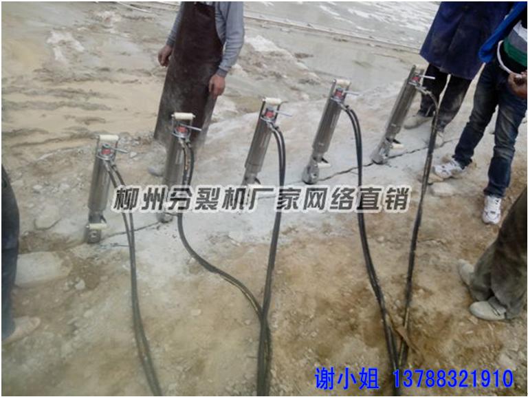 液压分裂机又名劈裂机(岩石混凝土静态破拆机)、膨胀裂石机、静态爆破设备等;是一种具有高膨胀性能的非爆破性破碎用液压机械。非燃、非爆、运输、操作方便。产品特点:破拆过程无振动、无冲击、无噪音,无粉尘,数秒钟内完成破拆,单机最大破拆力可达600吨,单机最大破下碎块可达一个立方,工作效率高,可控制破拆、拆除、破拆尺寸精确、操作简单、可在室内和狭窄场地进行拆除工作,可用于水下施工。 液压分裂机(高效无声破碎机)以其高效性、安全性、易操作性和综合性价比优势,在国内外的市政、路桥、隧道、港口、水利水电、采矿等工程中已得到广泛的应用,如:山峡水电站修建工程、中铁7局隧道避险洞掘进工程施工、广西、贵州、四川、湖南变电公司基塔基础工程施工,柳州公园危岩工程处理,钦州、内蒙古高速公路路面翻新,贵州房屋基础岩石移除,河池岩石二次分解等,并已被国外的印尼、越南、非洲等国家的矿山及国内几十家大型矿山认可及使用。 液压分裂机(高效无声破碎机)适用范围: 一、混凝土或钢筋混凝土的拆除和静力破碎 1、新浇超灌混凝土部位的拆除,如桩承台、桥墩等; 2、旧桥梁、桥墩、公路、堤坝、涵洞、泵站等混凝土设施的改造或拆除; 3、大型设备混凝土基础及混凝土桩、柱、台、座等的拆除; 4、高速公路、隧道、地铁、机场、电厂、油库等及其周边的混凝土构筑物的改造或拆除; 二、石方的破碎开挖、掘进. 1、建筑物地基、桩基岩石的破碎开挖及沉井工程施工; 2、公路拓宽改造工程中岩石基础的破碎开挖; 3、护坡形成、边坡治理工程中的岩石破碎; 4、市政工程中燃气管、水管、电缆等地下管网铺设工程中岩石的开挖; 三、石材的切割-a、花岗石、大理石、汉白玉等经济类石材荒料的开采和切割,成材率提高达2~3倍; 1、工程爆破、控制爆破的预裂施工;炸药爆破后的二次破碎; 2、代替锚固材料进行隧道、涵洞施工; 3、其它不适宜炸药爆破环境条件下的各种混凝土构筑物、炉窑耐火材料等脆性物体的拆除及岩石破碎工程。 使用方法: 1、启动总机开关,机器运行。 2、将破碎枪头插入事先打好的孔中,打开手动阀,等待5~10秒,岩石或混凝土即开裂。
